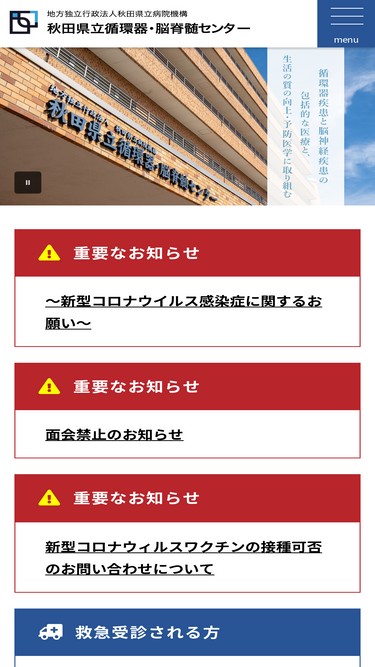 67%秋田県立循環器・脳脊髄センターは、脳神経疾患および循環器疾患の予防、診断、治療について最新情報を広く世界に発信し、リハビリテーションや脊髄脊椎疾患の治療を通じ県民の生活の質を向上させることに取り組んでいます。