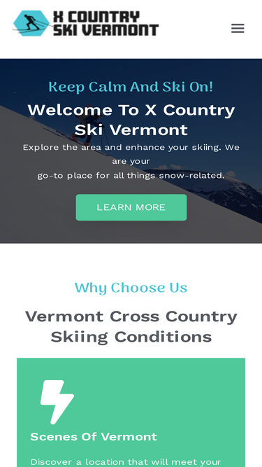 99%keep calm and ski on! welcome to x country ski vermont explore the area and enhance your skiing. we are your go-to place for all things snow-related. learn more why choose us vermont cross country skiing conditions scenes of vermont discover a location that will meet your criteria for a wonderful ski area by exploring