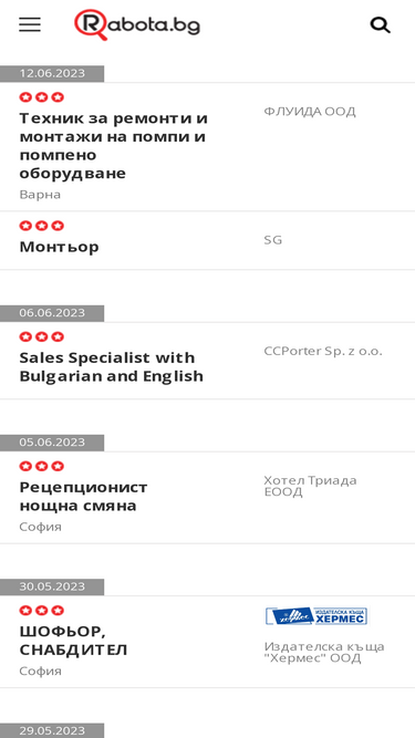 70%всеки ден нови обяви за работа в българия и чужбина. обяви за работа. търсене на работа. предлагане на работа от работодатели и агенции за подбор на персонал. създаване на автобиография и мотивационно писмо. работа в софия, пловдив, варна, бургас...