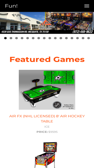 FUN! Superstore is a 5000 square foot showroom in Mesquite, Texas and is one of the largest suppliers of restored and collectable gameroom supplies and equipment, including pinball machines, pool and billiard tables, slot machines, shuffleboard tables, vintage arcade games, foosball tables, dart boards and more!