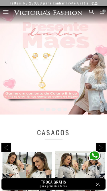 100%Bem-vinda à Victoria's Fashion, sua loja de moda feminina online! Explore nossas coleções exclusivas. Descubra peças que valorizam seu estilo e se sinta incrível em cada ocasião. Aqui, a moda é feita para você brilhar!