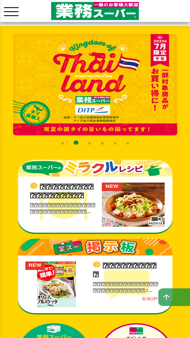 92%プロの方はもちろん一般のお客様も大歓迎!業務スーパーのウェブサイトです。「毎日がお買い得」をコンセプトに、世界中から直輸入した食材や、国内自社工場のオリジナル商品などをご提供しています。店舗検索、webチラシ、商品情報、レシピ、セール情報をご案内します。