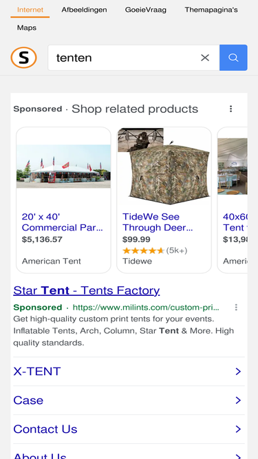 de-kampeerwinkel.com ist die viertähnlichste Website zu kampeermarkt.com, während tenten.startpagina.nl in Februar 2026 den fünften Platz belegt.