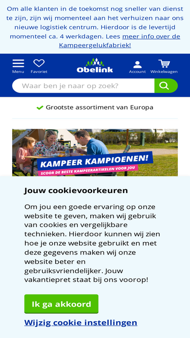 obelink, het startpunt voor kampeerders met het grootste kampeerassortiment van europa.
