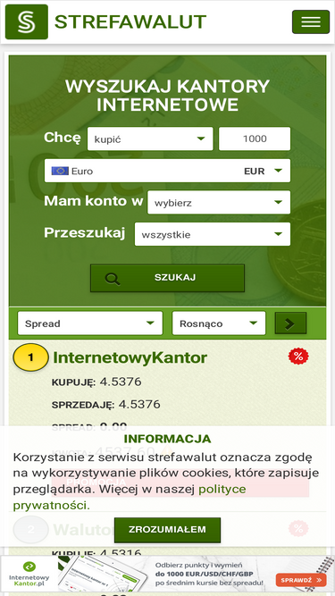 93%strefawalut.pl to porównywarka kursów walut w kantorach internetowych, ranking platform przelewów zagranicznych oraz wyszukiwarka kantorów stacjonarnych.