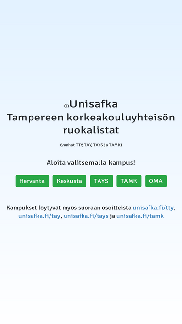 100%TUNI eli TTY, TAY, TAYS ja TAMK: Tampereen korkeakoulujen ruokalistat