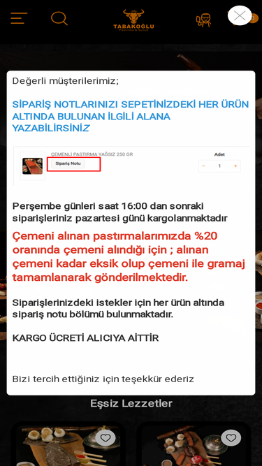 Kastamonu'ya özgü tüm yöresel lezzetler Korkoroğlu Pastırma & Sucuk'ta. Pastırma, sucuk, pekmez, reçel ve daha birçok doğal ürün tek tıkla kapınızda...