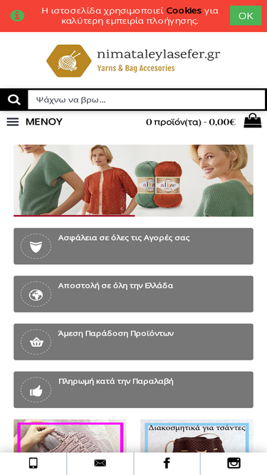 82%Αγοράστε Νήματα Μαλλιά Είδη Πλεξίματος Εργαλεία Χερούλια Λουριά Πουγγιά Καμβάδες Κουμπώματα Αλυσίδες Διακοσμητικά για Τσάντες Βελόνες Κλωστές Χάντρες Τιμές Χονδρικής Μεγάλες Προσφορές Άμεση Παράδοση στο Χώρο σας Πληρωμή Αντικαταβολή ή Τραπεζική Κατάθεση...