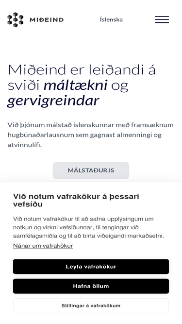 85%Miðeind er leiðandi hugbúnaðarfyrirtæki á sviði máltækni og gervigreindar.