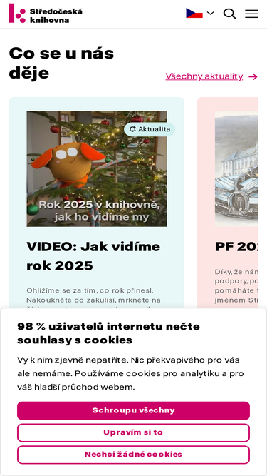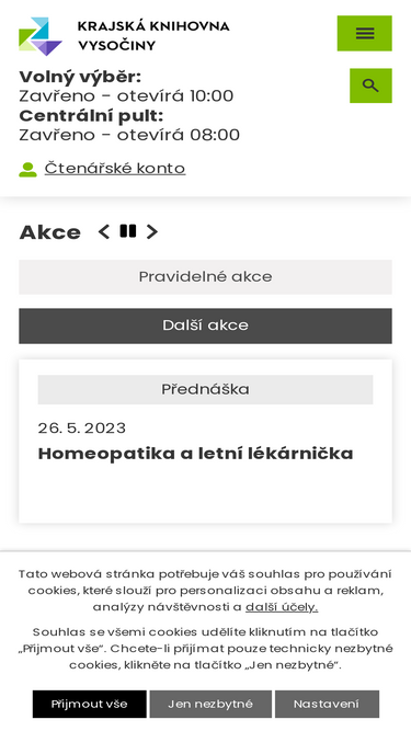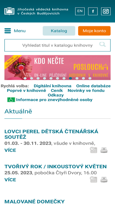 77%Úvodní stránka. Na webu naleznete všechny potřebné informace o provozu knihovny, službách, pořádaných akcích a vždy něco navíc.