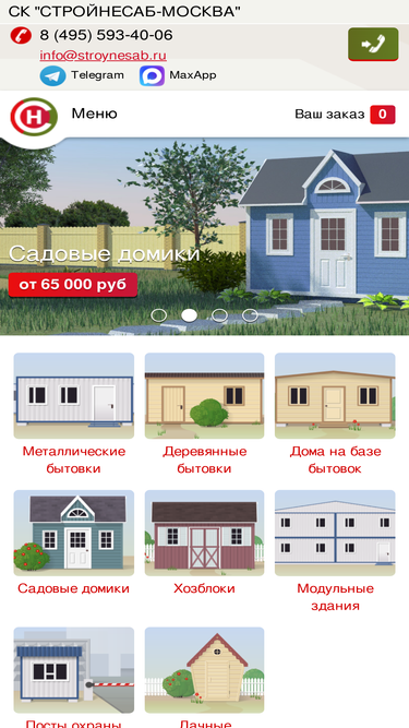 100%ооо "стройнесаб-москва" работает в сфере малоэтажного строительства быстровозводимых зданий на рынке москвы уже более пятнадцати лет. в сфере производства компании: садовые домики, строительные металлические и деревянные дачные бытовки, хозблоки, беседки.