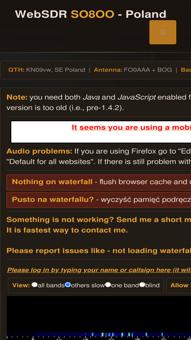 97%Ten serwer WebSDR zbudowany jest z użyciem dedykowanego do tego celu serwera (i5-3470 CPU @ 3.20GHz z 8GB pamięci). Odbiornik aktualnie jest jeden – SDRplay RSP1A. Po ostatniej aktualizacji dostępne są dwa trzy odbiorniki – SDRplay RSP1A dla pasma 80m oraz dwa RTL-SDR V3 obsługujące pasmo 160m i 40m. Do odbiorników podłączona jest oddalona o … Read more "O projekcie"