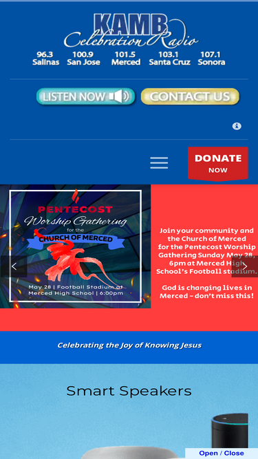 100%Celebration Radio KAMB is a Listener-Funded, Contemporary Christian FM Station. listen live on demand listen live on demand KAMB Weekday Hosts Brandon Kyle M-F 6 am – 10 am, Sun 3 pm – 8 pm Read more Deb Millin M-F 10 am – 3 pm Read more Lisa Barry M-Sat 3 pm – 8 pm Read more KAMB Thanks Our Impact Sponsors Click Here for the Sponsor Directory Listeners Say... The Song, “So Will I“, reminds me of the magnitude of who God is, His creation, and He is worthy of all praise! Andrea, Santa Nella The song, “Flowers“, helps me remember we have a good God with the perfect plans for us as I’m going through chemo. Kimery, Los Banos I have witnessed to all my friends with KAMB by playing it on my truck’s radio every time my friends got in my truck. Lynn, Jamestown