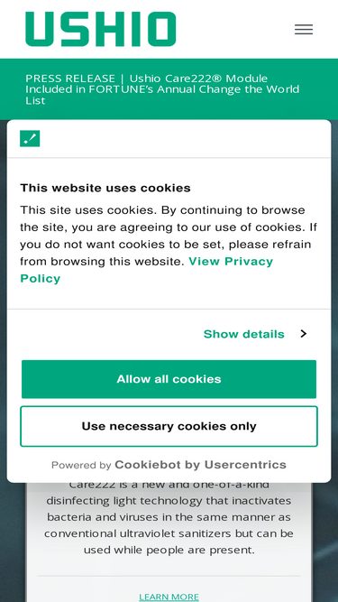 91%For Ushio Inquiries, including Care222® products, please contact us using our online inquiry form.