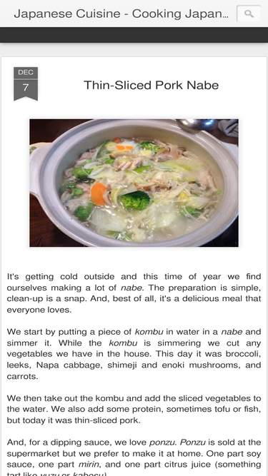 93%This blog contains Japanese recipes that we eat at our home and resources for Japanese food. My other blog, http://foodsaketokyo.wordpress.com/, introduces readers to food shops of Tokyo and is more a travel guide to foodies in Tokyo.