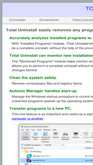 86%total uninstall utility analyze installed programs or monitor new installations to uninstall software completely.