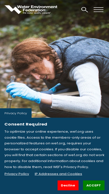 78%welcome to the water environment federation. our members work every day to fulfill our mission of inspiring the water community in pursuit of human and environmental well-being. at wef, we have set our sights on our vision for the future: life free of water challenges.