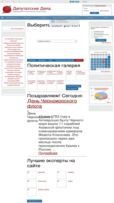 100%главная | депдела.ру - все о политике, депутатах и политических организациях. на данном сайте собрана информация по российским,региональным и городским политическим организациям и депутатам, в том числе и о главная. депдела.ру - политическая социология,политическая аналитика. экспертное мнение по депутатам и главная,видные политические деятели их публикации, фотографии и подробные биографии
