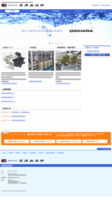 85%小型ポンプ・水処理装置・金型・樹脂成形の荻原製作所のホームページ。
