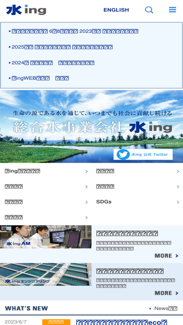100%「新・水時代」をリードする総合水事業会社 水ing株式会社 コーポレートサイトです。