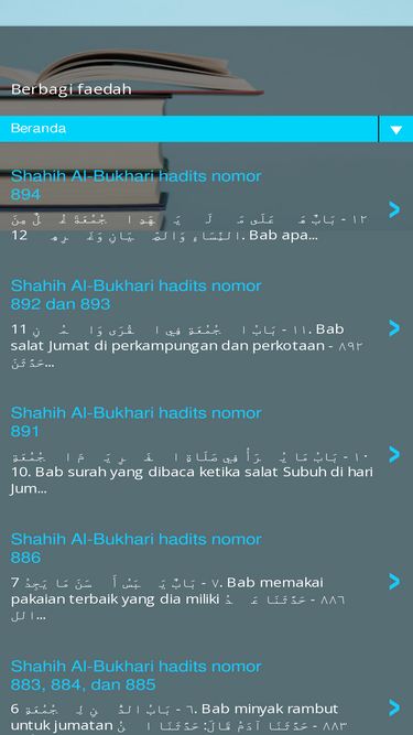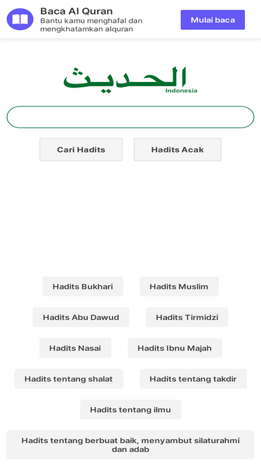 Hadits online 9 kitab hadits terjemah Indonesia: Shahih Bukhari, Muslim, Sunan Abu Daud, Tirmidzi, Nasa`i, Ibnu Majah, Muwatha Malik, Musnad Ahmad, Sunan Darimi