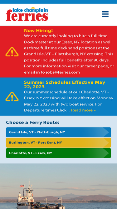 96%Main Office: Lake Champlain Transportation Company 1 King Street Dock Burlington, VT 05401-5293 Tel: 802.864.9804 Fax: 802.864.6830 Customer Service and General Inquiries: customerservice@ferries.c…