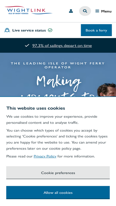 100%award-winning ferry service between the isle of wight and uk mainland, bringing 4.3 million people together every year. crossing times from just 22 minutes.