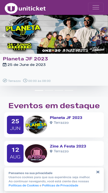 89%Os melhores eventos. Teatros, festas, shows, eventos corporativos, gastronômicos e muito mais. Garanta seu ingresso!