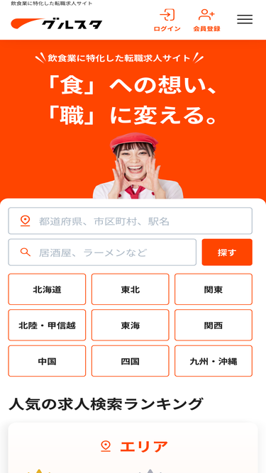 84%グルスタは居酒屋やラーメン、カフェやバーなどの飲食業に特化した転職求人サイトです。飲食業専門の求人サイト。最速採用の求人サイト。求職者が使いやすい求人サイト。アツアツスカウト。企業評価機能「イイね」搭載。グルスタ流ヒアリング100%実施。掲載無料の求人サイト。管理画面が「スマホ」で見やすい!使いやすい!飲食業に特化した検索機能。