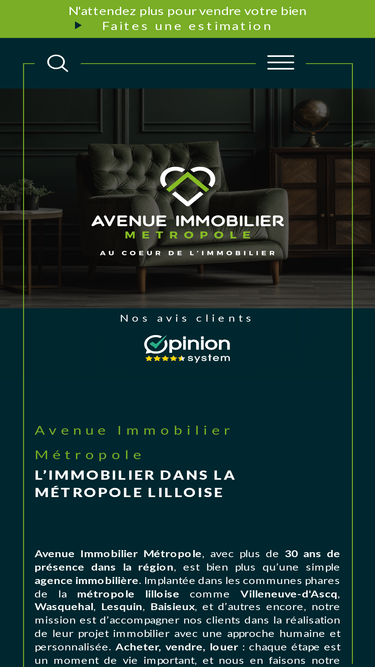 78%L'agence immobilière Avenue Immobilier Métropole sur Villeneuve-d'Ascq, Lesquin, Baisieux, Lambersart, Wasquehal vous accompagne dans la concrétisation de votre projet immobilier. Découvrez nos annonces immobilières.