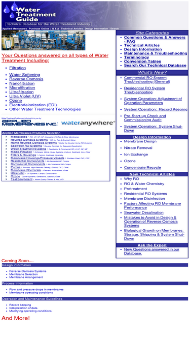 technical database for water filtration & treatment including reverse osmosis, microfiltration, ultrafiltration, nanofiltration, water softeners, media filters, silt density index and more