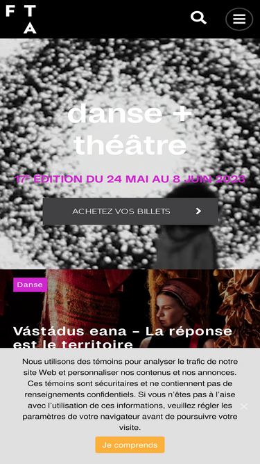 98%La 19e édition du FTA - Festival TransAmériques, festival international de danse + théâtre, aura lieu du 22 mai au 5 juin 2025 à Montréal.
