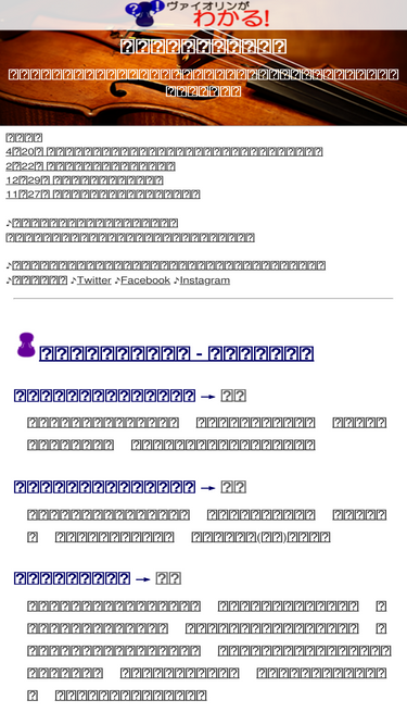 87%東京・愛知のヴァイオリン教室によるヴァイオリン情報サイト。ヴァイオリン入門情報、ボウイングやヴィブラートなど良い音を出すための弾き方や練習のヒント、楽器や弓の選び方、独学について、弦のレビュー、聴くべき名演奏のcdなど豊富に情報提供。