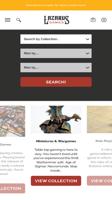 83%With a huge selection of new and used RPGs, CCGs, miniatures, and other gaming supplies, Lazarus Games is a great for-realsie local game store and certainty not a front for a Cthulhu cult. We offer free shipping on all orders over $149. Contact us if you have gaming supplies you would like to sell or trade!