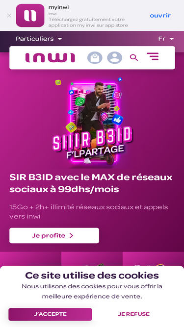 90%Un max d'avantage avec inwi Maroc. inwi propose des offres et services, pour les professionnelles comme pour les particuliers de téléphonie mobile, d'internet et de fibre.