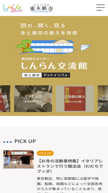 56%真宗大谷派(東本願寺)が運営するしんらん交流館ホームページ(浄土真宗ドットインフォ)では、浄土真宗の教えにふれる情報、お寺のサポート情報、しんらん交流館で行われる行事などをご紹介いたします。