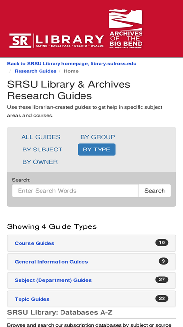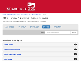 85%SRSU Library & Archives Research Guides Use these librarian-created guides to get help in specific subject areas and courses.