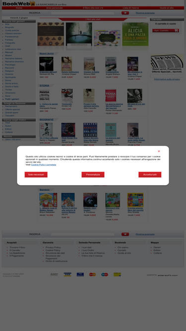 100%sito di vendita online della bancarella bookweb.it, con un vasto catalogo di libri remainders a meta’ prezzo, libri introvabili, libri super scontati, consegna in 48 ore.