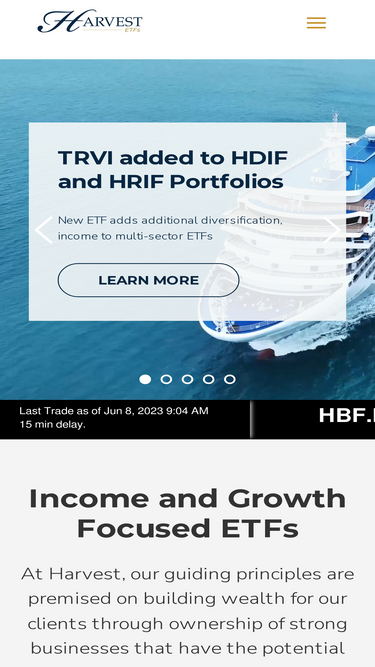 76%Harvest Portfolios - FNB | Fonds communs | Fonds structurés Harvest Portfolios est un fournisseur canadien de solutions d'investissement conçues pour aider les investisseurs à gagner un revenu constant et à améliorer les rendements. Harvest utilise les « options d'achat couverts » comme stratégie génératrice de revenus. Premier FNB Chaîne de blocs canadien. Apprendre encore plus...