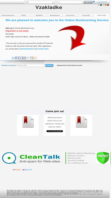 vzakladke - free online bookmarks and notes service. in bookmarks, you can add any links to favorites and edit them, or simply export them from the browser to the system. create your notes, manage your notes. remember everything!