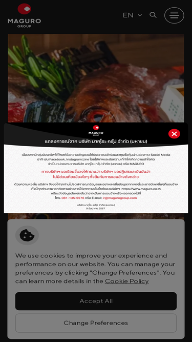 58%Give More.. Anytime Anywhere Premium quality Japanese food Deliciousnessthat we are ready to deliver in every occasion. MAGURO GO was begun from the intention of delivering the Sushi Moment experience from MAGURO recipe in a more convenient way for you and we have our first delivery service in 2020. We deliver a variety of delicious menus with good ingredients, premium quality and best value price with the same standard while you eat at the restaurant. We also have been entrusted to provide MAGURO experience on special occasions with catering services for seminars and other various important occasions throughout Bangkok and its vicinity. Sushi Moment Always With You! Order Food Through MAGURO Go Eazy Login with LINE Choose the menu you like and press add to cart Choose a delicious delivery address Order confirmation with payment Waiting to receive deliciousness at your home! Contact: Enquiry@magurogroup.com Follow: Download Menu