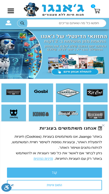 89%ג'אנגו - חנות חיות ללא מעצורים, החנות המובילה בארץ לבעלי חיים. מגון מוצרי מזון, אביזרים וכל מה שהכלב, החתול או כל בעל חיים אחר צריך. משלוחים חינם לכל הארץ!
