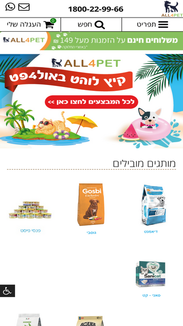 85%all4pet - הכל לכלב ולחתול היא חנות חיות שבה תוכלו למצוא אוכל לכלבים, מיטה לכלב, מזון לבעלי חיים, חנות חיות | אוכל לכלבים | מיטה לכלב | מזון לבעלי חיים | ציוד לבעלי חיים