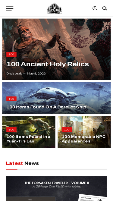 100%100 Magical Fountains and Pools By DndspeakApril 1, 2022 One hundred mystical fountains filled with magical liquid that your players can drink! Read More 100 Effects From Looking Upon A Great Old One By DndspeakFebruary 1, 2022 The Great Old Ones are a group of unique, malignant beings of immense power. They reside in various