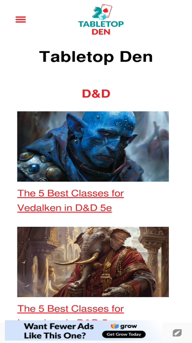 roleplayingtips.com ist die viertähnlichste Website zu litrpgreads.com, während tabletopden.com in Januar 2026 den fünften Platz belegt.