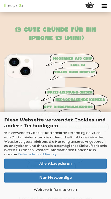 87%Kaufe refurbished Apple iPhones, iPads und Watch bei itmops – nachhaltiger und günstiger als neu. Entdecke verschiedene Modelle und spare dabei!