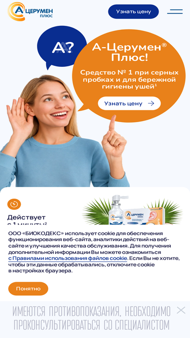 77%А-Церумен Плюс — современная гигиена ушей и помощь в растворении серных пробок
