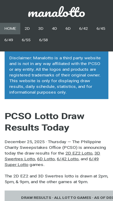 97%december 21, 2024 - see the latest draw results for 2d, 3d, 4d, 6d, 6/42, 6/45, 6/49, 6/55, 6/58 lotto games. view the winning combination, winners, and jackpot prize!