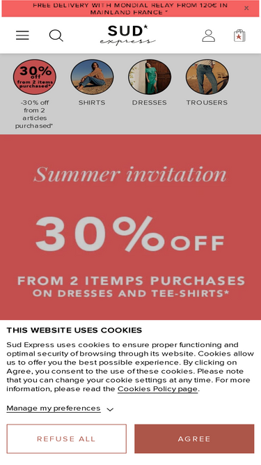 65%Give the gift of choice with a Sud Express gift card, usable in-store only . Perfect for any occasion, our gift card lets you choose from a wide range of casual-chic and trendy clothing. Whether it's for a birthday, a celebration, or just to bring joy, it's the ideal gift that suits every style. 1. Choose the value of the gift card. 2. You will receive a purchase confirmation email, which you can print or forward to the recipient. 3.The gift card is valid for one year in all Sud Express boutiques in mainland France. Please note that the card is neither personalized nor nominative.