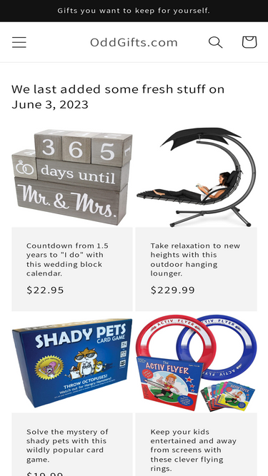 100%OddGifts.com is an online gift store designed to find and review the most unique, cool gift ideas that pop up across the web, updated daily. We specialise in unique gift ideas for men, women, kids, couples, geeks, techies plus many more cool gift idea categories. We are full of surprises.